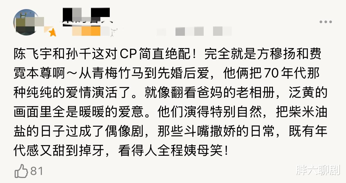 昨天晚上,由陈飞宇,孙千主演的年代剧《纯真年代的爱情》播出了。