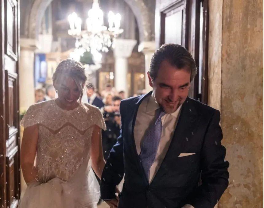 虽然宾客只有50来个人,但都是重量级的,这阵仗可不小。婚礼在雅典圣尼古拉斯教堂举行的,地方选得挺有意思,跟新郎同名,不知道是不是故意的。新娘克里西的婚纱是希腊品牌Christos Costarellos的,据说象征着永恒的优雅,听着就很高大上。