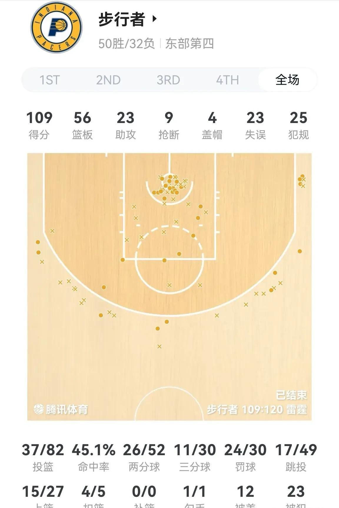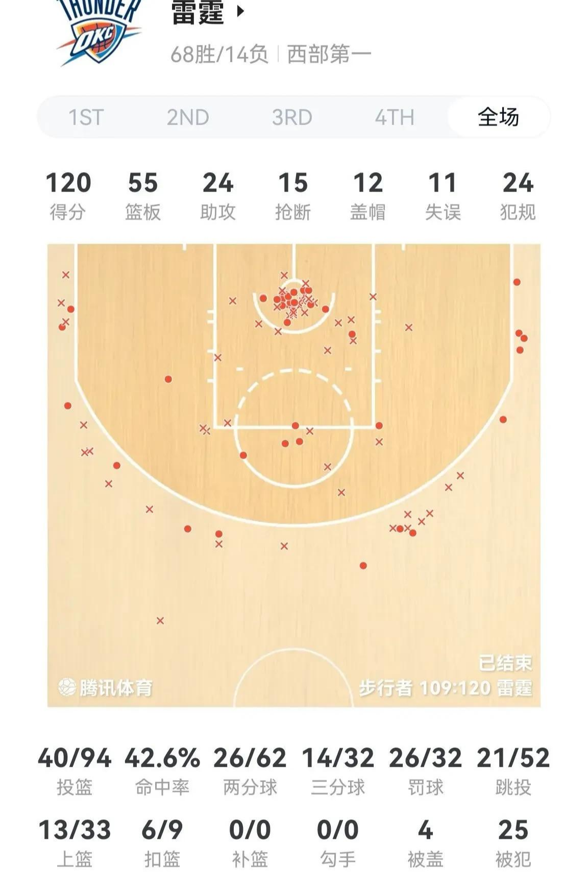 第4节比赛开始,步行者一度将比分追至93:95。无奈这个夜晚终究属于杰伦-威廉姆斯,第4节又拿到11分,全场爆砍40分6篮板4助攻。雷霆120:109战胜步行者。