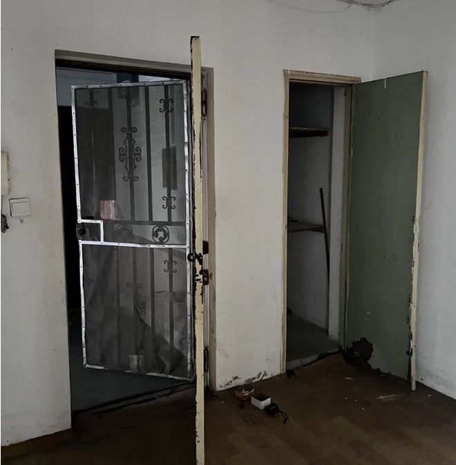 原本玄关一进门的位置,就能感受到这老破小的“年代感”,无论是纱网外门,还是薄薄的室内门,都给人一种破旧衰败的感觉,入户玄关旁边的壁橱更是如此,连木门都受潮变形、漆面脱落了。