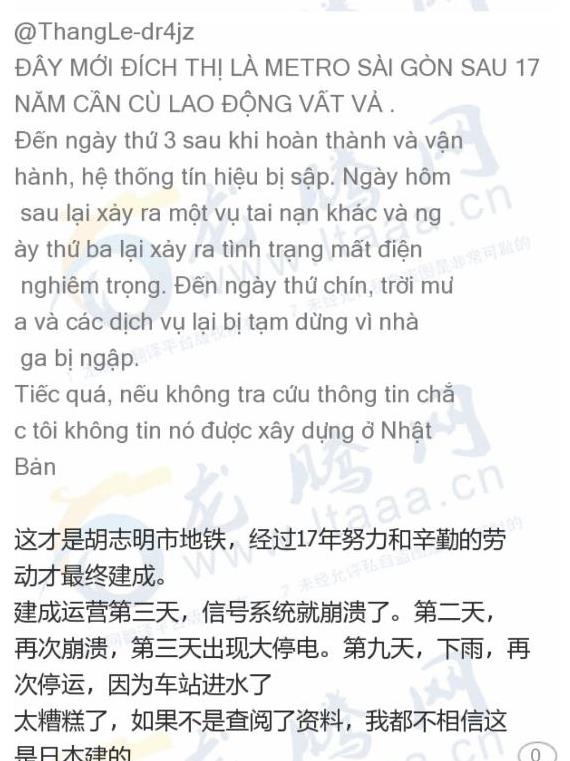 刚刚落成的越南胡志明地铁,日本花费十七年时间建造完毕,建成运营第三条,信号系统崩溃了;过了一天后,信号系统再次崩溃;第三天,地铁遭遇大规模停电,且地铁没有备用电力;第九天,因大雨导致地铁被淹,再次停运。