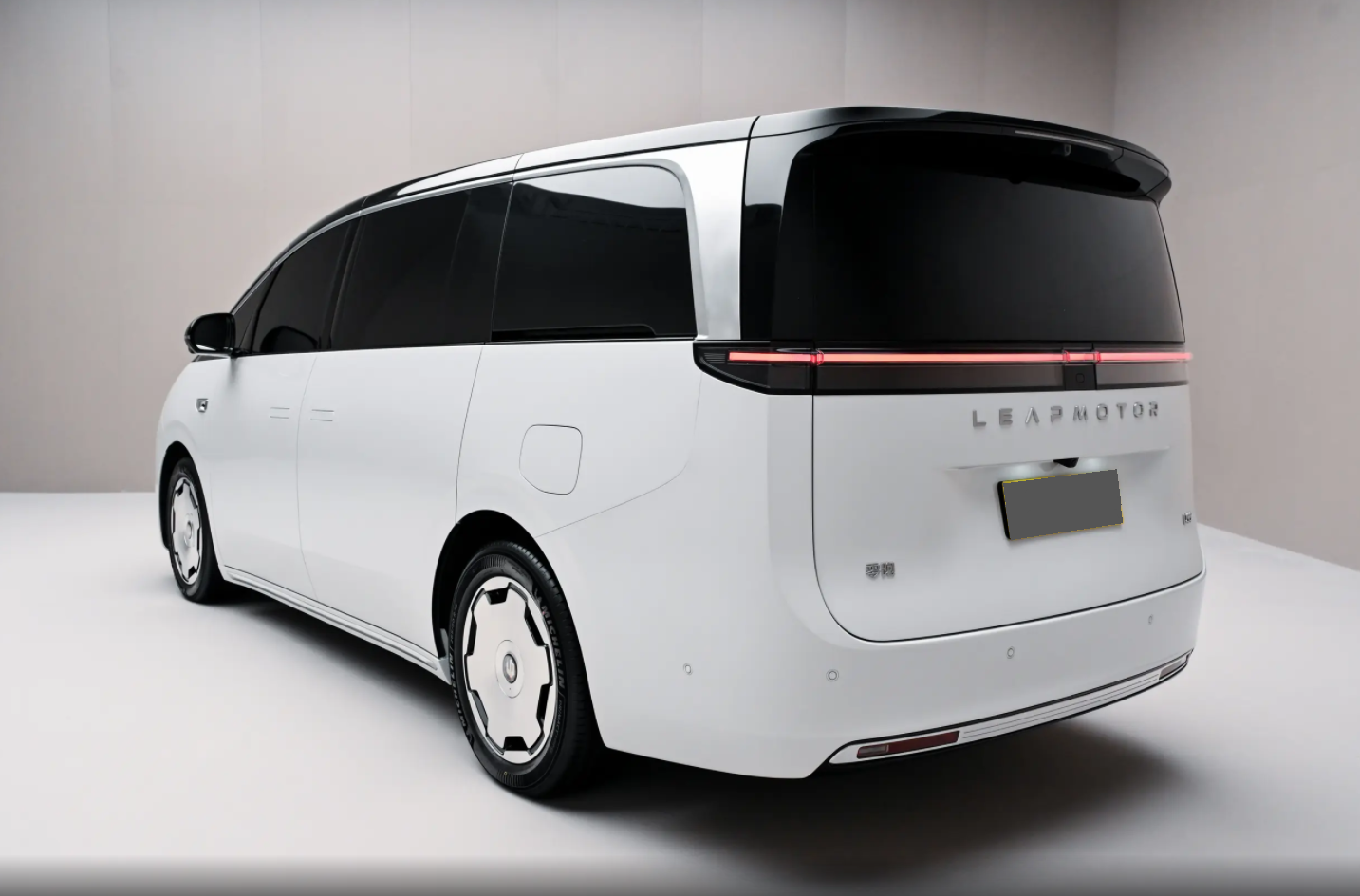 但从车身尾部来看,零跑D99并没有融入与头灯组一样的设计风格,当然这一设计与零跑D19保持一致,或许只能通过尾灯下方硕大的品牌英文Logo来提升整个车尾的辨识度。另外从零跑D99整车的比例来看,新车并不像理想MEGA和小鹏X9一样那么“极端”,反而是融合了传统MPV和新时代MPV的优势,后半段相对规整的车厢结构,是为了保证车内的空间表现和乘坐体验,而前半段无疑是起到节能减阻的作用。