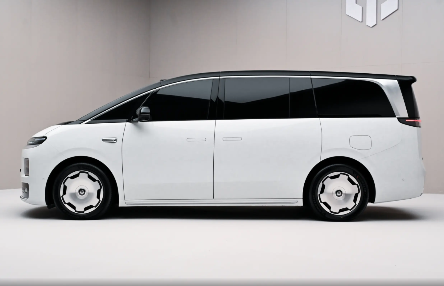 其次从外观造型上来看,零跑D99的车头部分与理想MEGA的设计理念一致,流线型的车身结构可以尽可能的减少车身的风阻系数,同时在高速行车的状态下,也会减少外界传来的一些风噪。而除此之外,零跑D99车侧的车窗与B/C柱采用纯平设计,而这同样是降低风阻提升车内静谧性的一种设计理念。不仅如此,短前悬+短车头的设计,也意味着零跑D99将整车的尺寸都贡献给了后排乘员舱和行李舱。而且为了进一步提升零跑D99的档次感,新车也采用了与零跑D19同款的大饼轮圈。