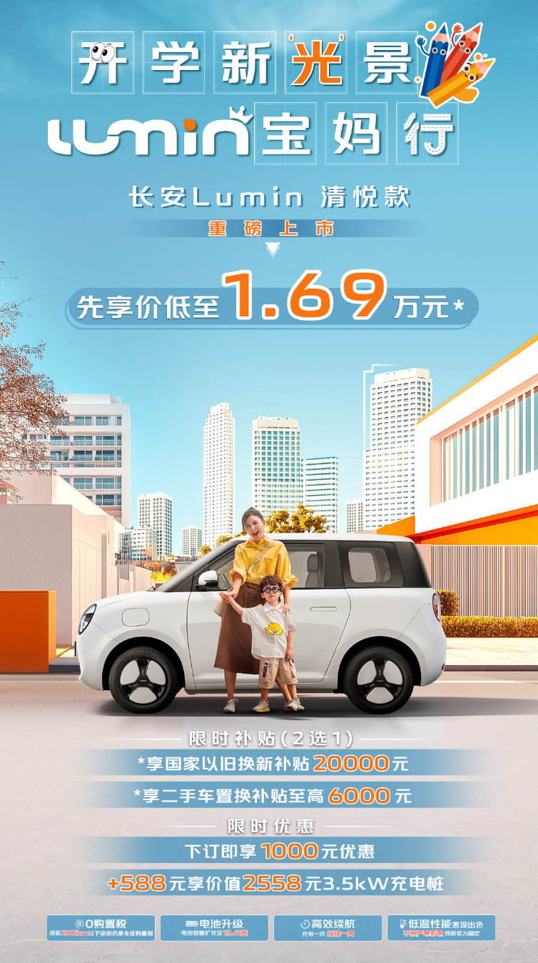 在金秋送爽的9月1日,当全国上下沉浸在开学迎新的喜悦氛围中时,国民出行领域的佼佼者——长安汽车,再次以一款诚意满满的全新力作,为年轻消费者群体带来了前所未有的出行新选择。长安Lumin系列家族的最新成员,清悦款,以低至1.69万元的先享价优雅登场,不仅延续了Lumin系列一贯的品质安全优势,更在电池技术、智能配置以及购车权益上实现了全面升级,为即将步入新学年的学子们及广大年轻用户,铺设了一条通往高品质移动生活的快车道。