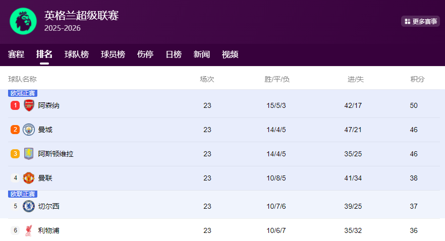北京时间1月26日,随着今天凌晨,英超23轮焦点大战,曼联客场3-2斩落阿森纳,迫使枪手停下脚步。后面追赶的曼城和维拉相继赢球,与榜首的差距缩小到4分,让一度清晰的争冠形式,又显得悬念重重。
