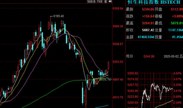 再回归到市场,在咱们假期的时候外围的反馈还是相对比较不错的。恒生科技指数选择向上进行突破,收复灌水导致的缺口。