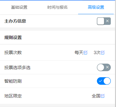 填写活动标题、说明、投票规则(可设每人每天投几票、防刷等);