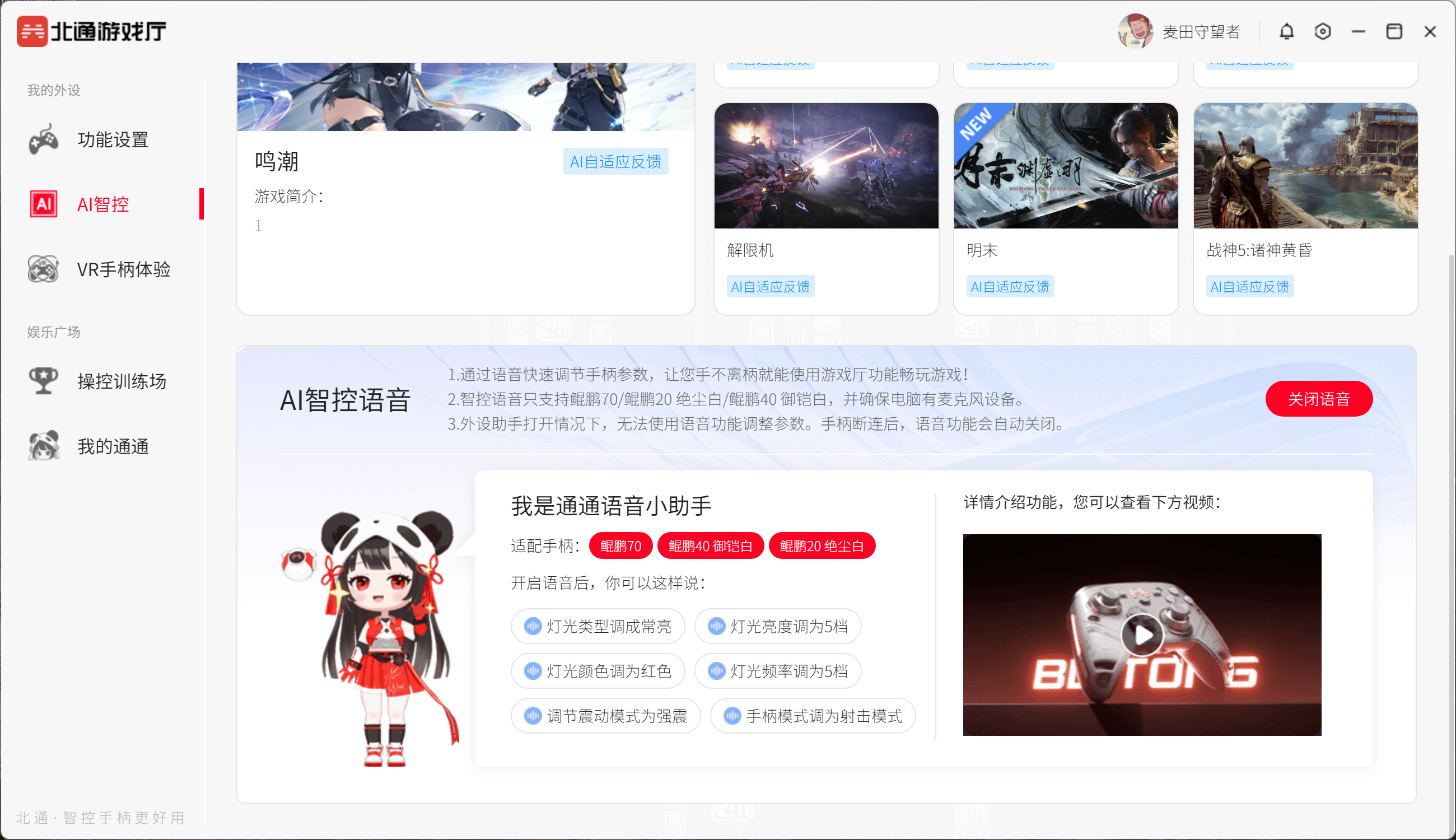 鲲鹏40的“智控”基因渗透至每一个细节,重新定义了游戏手柄的交互逻辑:1. AI语音2.0:一句话掌控全局l精准识别:唤醒词“你好,通通”或长按AI键激活,指令识别准确率提升至99%,支持多指令同时执行(如“震动调强+开启录屏”),随时调参 无需退出游戏。