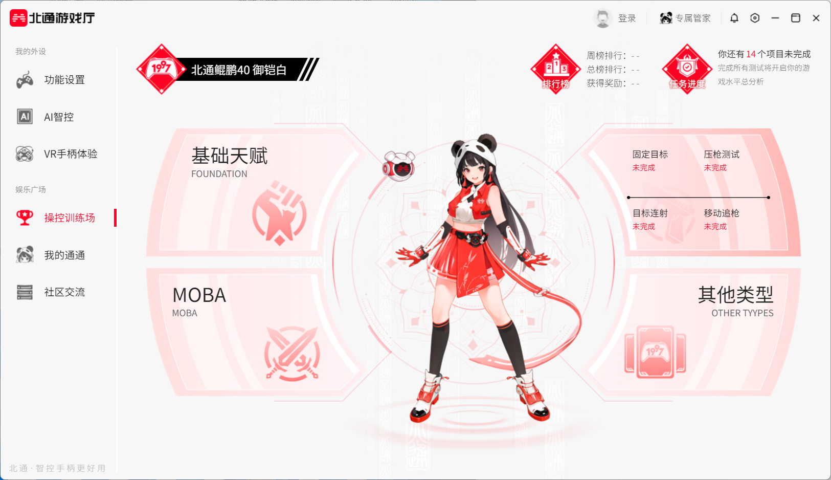 APP 内内置14款手柄训练游戏,配合北通自研硬核测试工具,帮助玩家快速熟悉手感、发挥硬件最大性能。