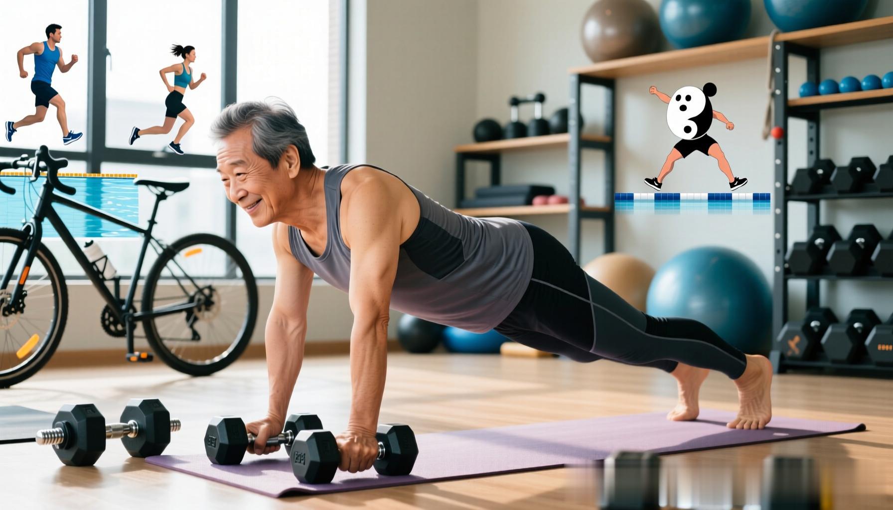 运动是中年养生的重要手段。建议每周进行至少150分钟的中等强度有氧运动,如快走、慢跑、游泳、骑自行车等,有助于改善心肺功能、调节血脂和血糖。同时,结合力量训练,如哑铃、俯卧撑、深蹲等,有助于增加肌肉质量,预防肌肉萎缩和骨质疏松。