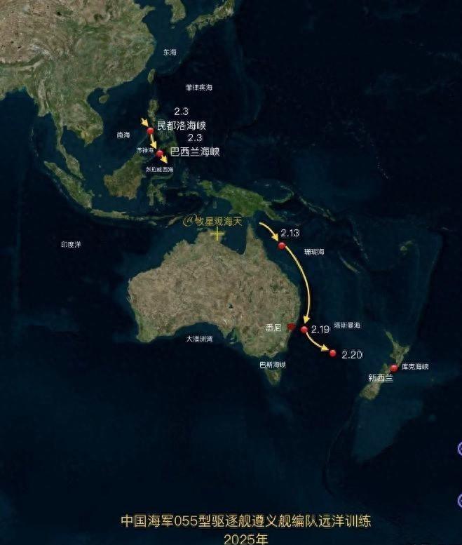 一场突如其来的军事演习,在遥远的塔斯曼海域掀起了波澜。2月19日至20日,中国解放军的055大型导弹驱逐舰遵义舰,率领着强大的水面打击群,从澳大利亚东海岸150海里处起航,直指东南,最终抵达澳大利亚和新西兰之间的战略要地——塔斯曼海。在这里,他们展开了一场震撼人心的实弹射击训练,让世界为之侧目。
