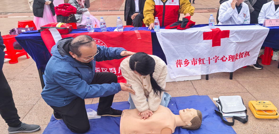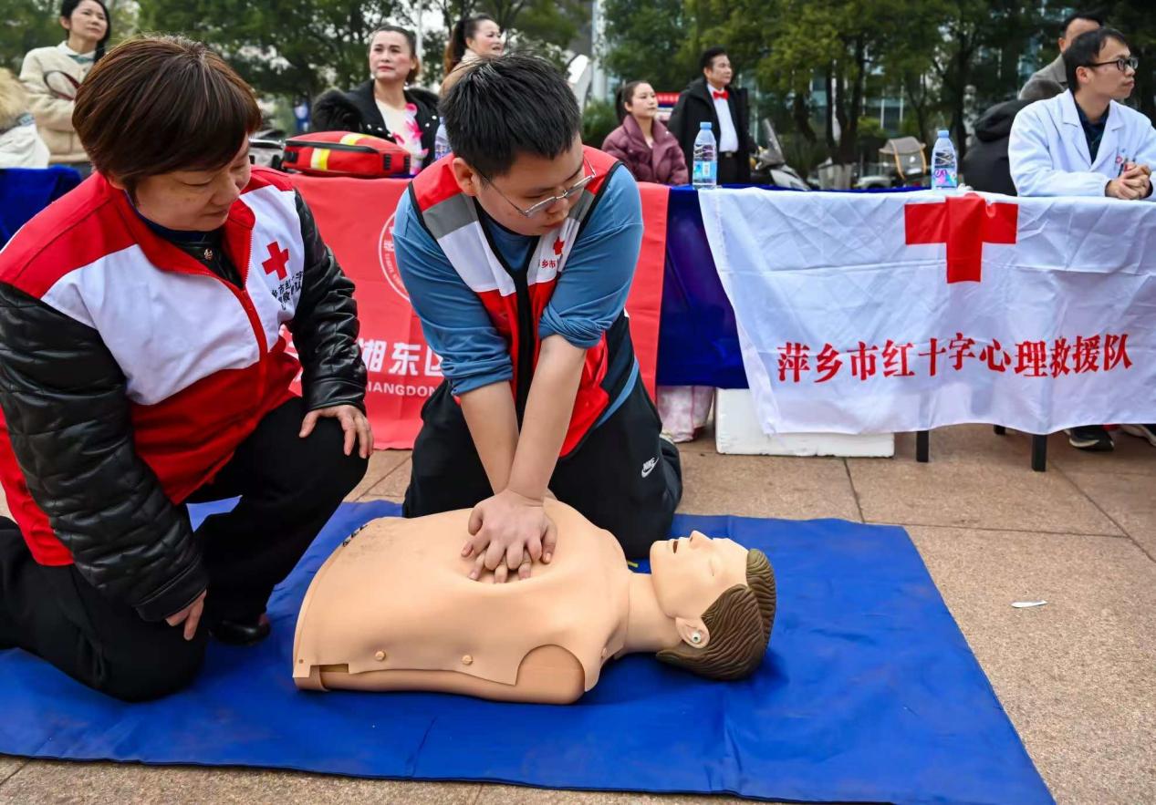 为进一步提升市民的应急救护意识和自救互救能力,筑牢城市安全防线,近日,萍乡市红十字心理救援队在湘东区萍钢广场开展应急救护知识普及活动。救援队志愿者们通过理论讲解、实操演示、互动体验等多种形式,将实用的急救知识送到市民身边,赢得了现场群众的一致好评。