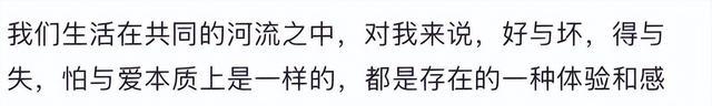 最后她的文章中还写到,生活中好和坏、得到和失去在根本上都是一样的,只不过结果的感受不一样。