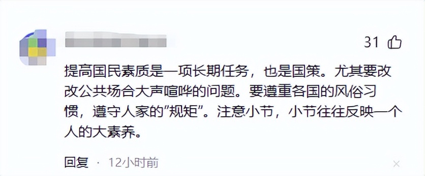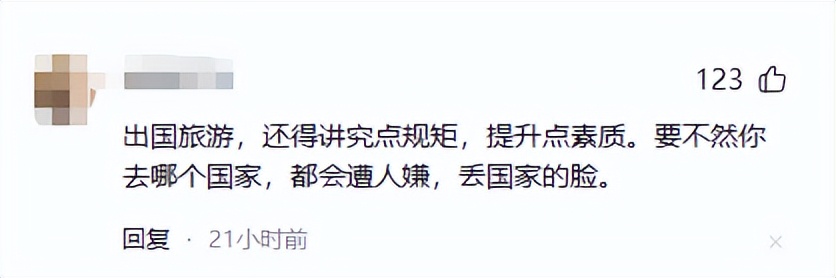 网友对此的看法有网友提议道:“出国旅游,还是得注意点规矩,也多注意一下自己的行为。