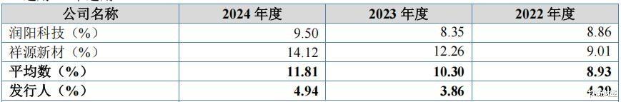 报告期内,新恒泰综合毛利率分别为22.98%、27.90%和25.37%,2024年,毛利率水平与同行业可比公司平均水平较为接近,2022年和2023年毛利率水平与同行业可比公司相比略有差异,但变动趋势一致,主要系公司与可比公司间产品结构、应用领域方面均存在差异。
