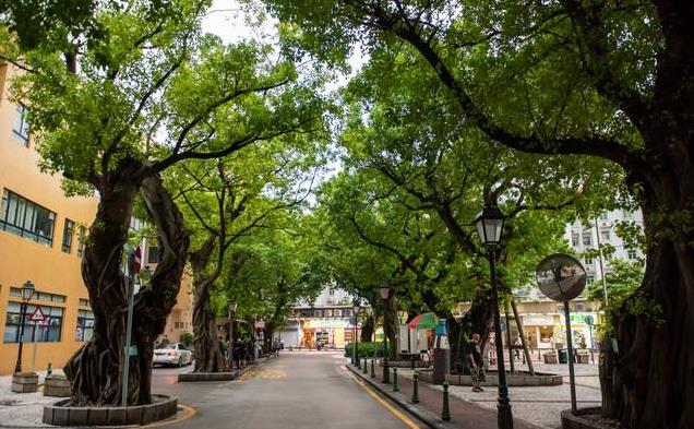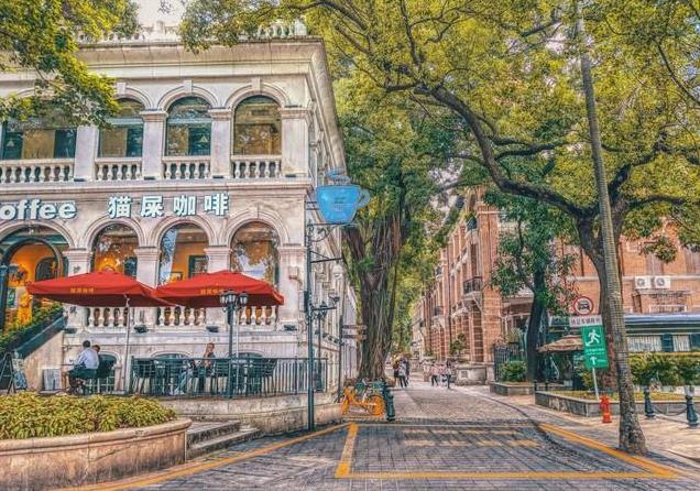 绿色长廊:沙面的街道两旁种满榕树和棕榈树,形成了一道独特的绿色景观,与欧洲建筑相得益彰。