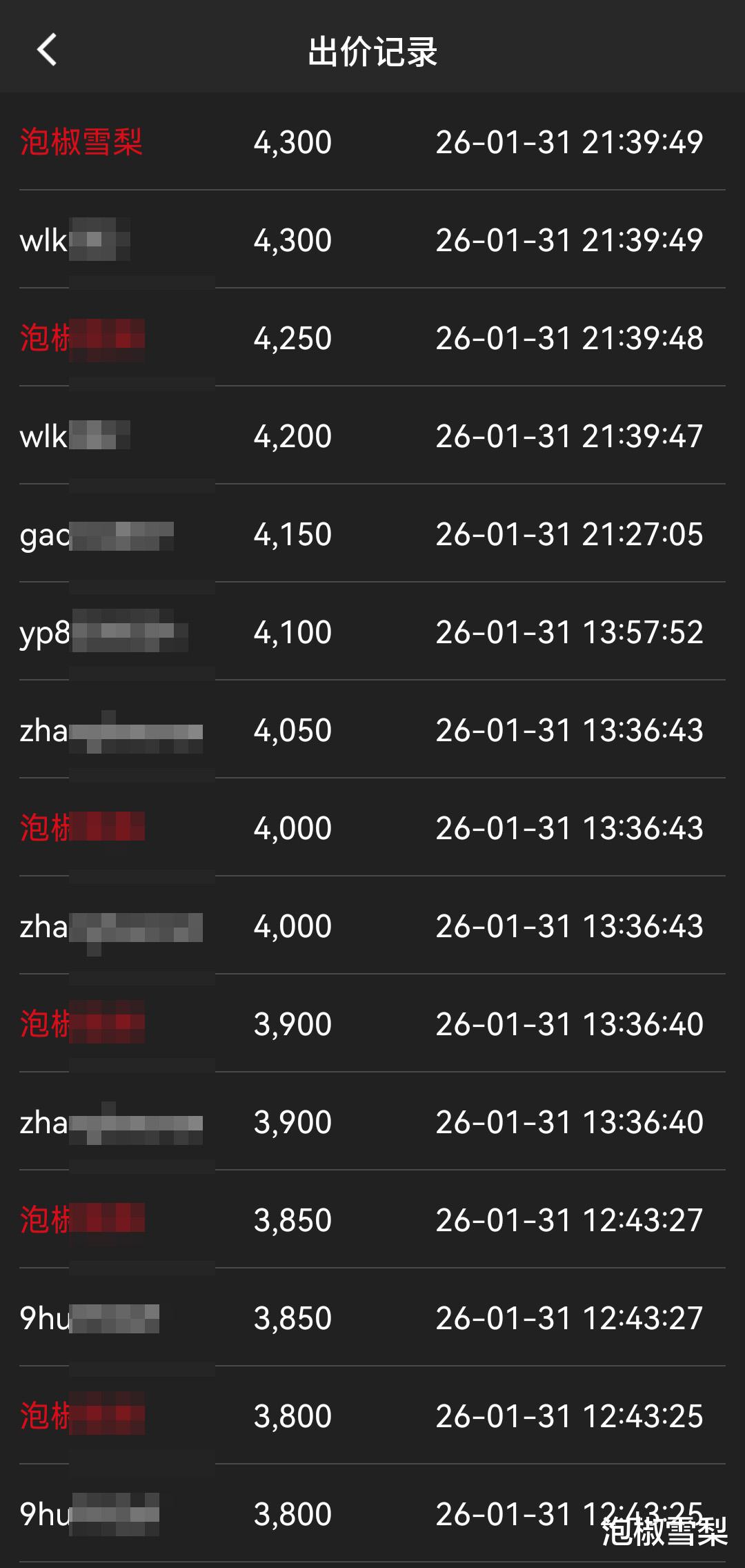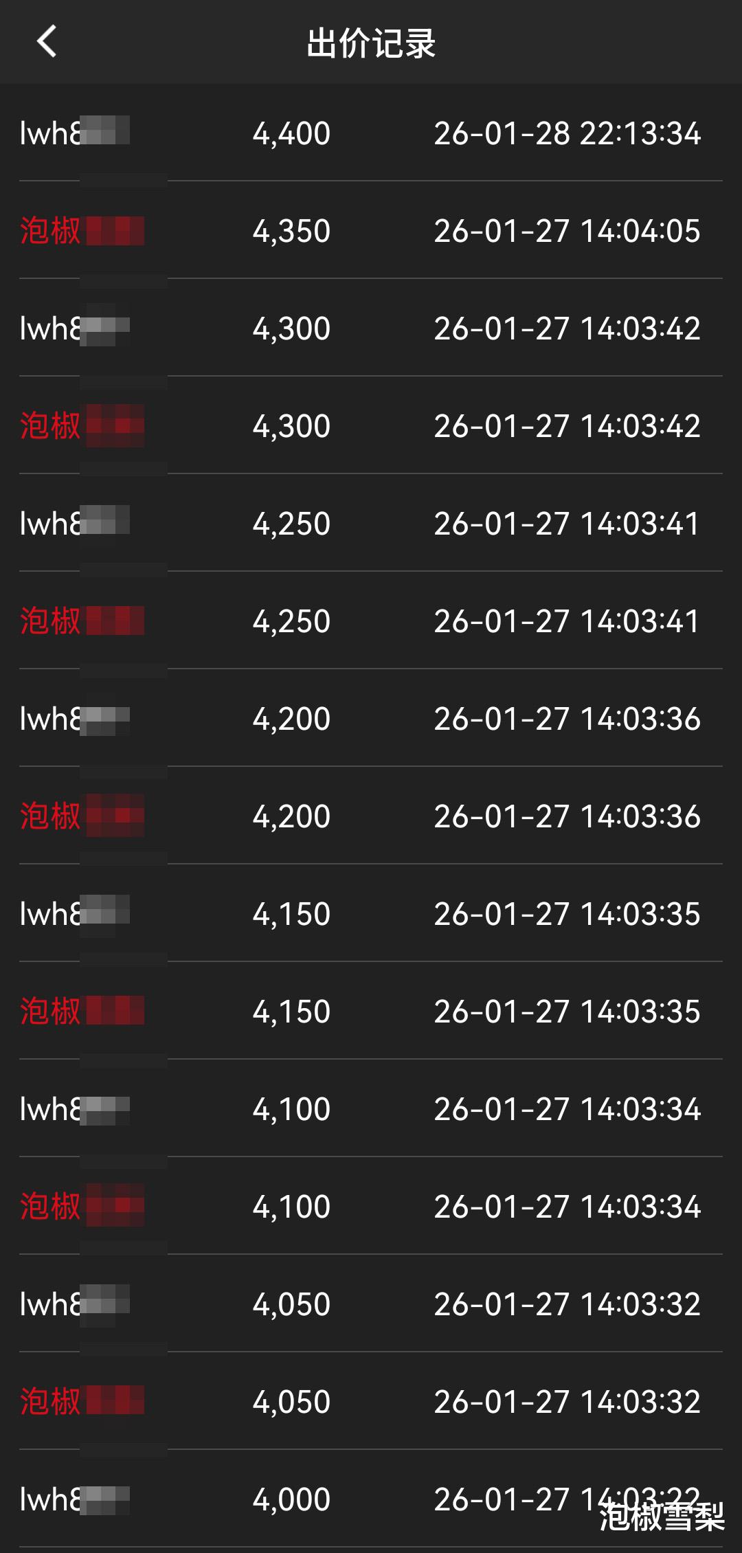 于是终于在最后3秒时,按下了提前输入的价格4300元,这是比当时拍卖价4200元高100元的价格,而按照平台的加价规则,默认加价为50元,所以100元就是在规则上加了一层保险。