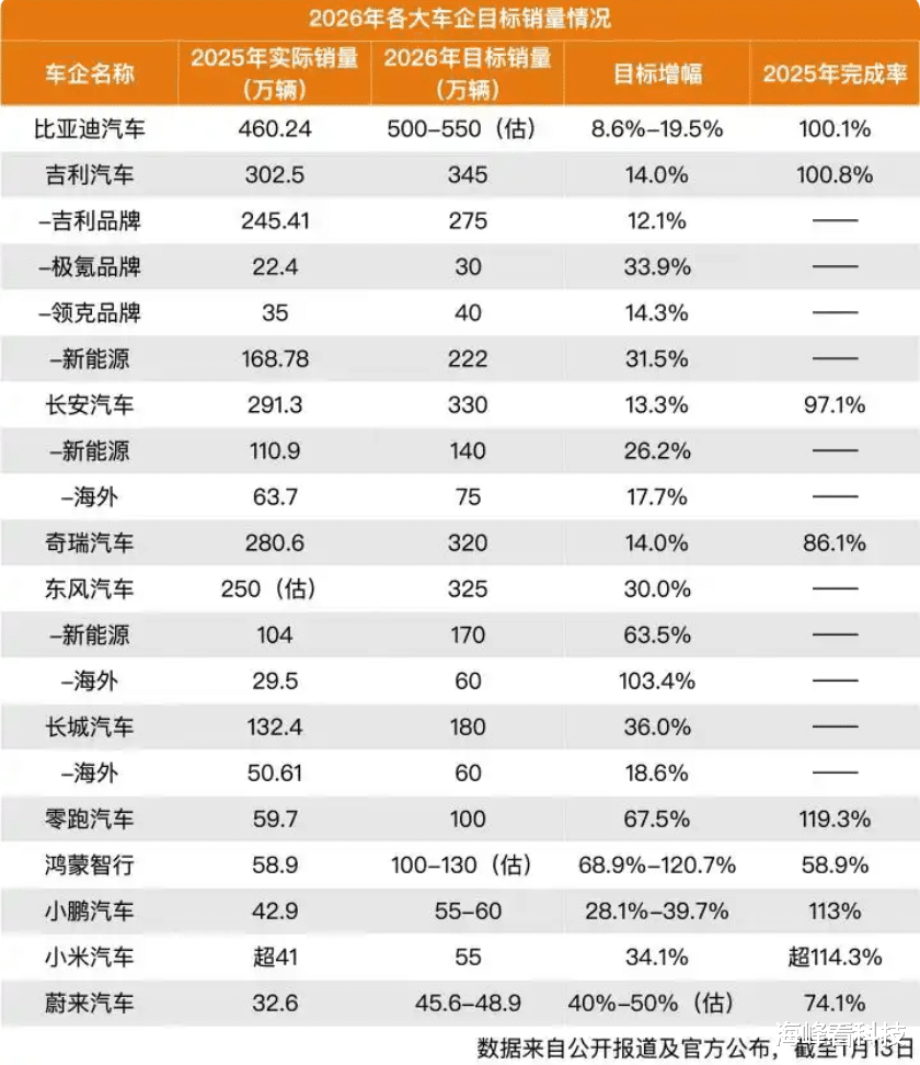 2026年车企销量目标的分化,折射出中国汽车行业转型期的多元路径。