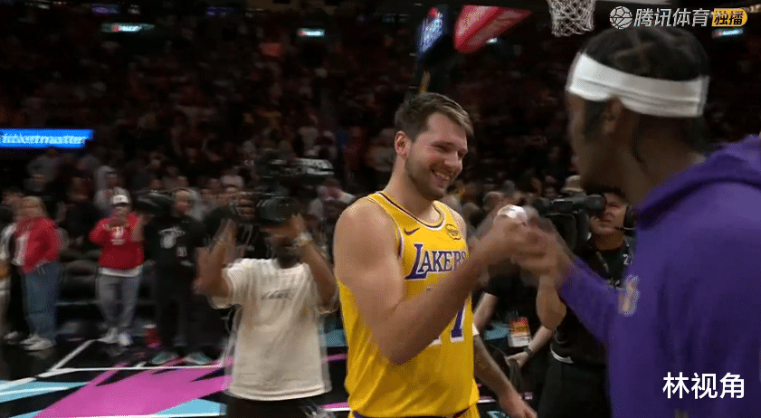 湖人八连胜!东契奇60+7+3,赛后老詹摁住东契奇,一起激情庆祝