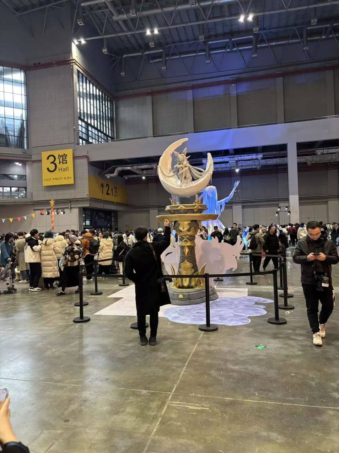 今年的FES展馆减少,人流格外拥挤。漫长的队伍让我们双脚酸软,大家不时说着“好累好苦”,偶尔吐槽周边难抢,但下一句总是:“下次米哈游不能多备点货吗?”“明年放票和展馆大小要多考量考量啊。”
