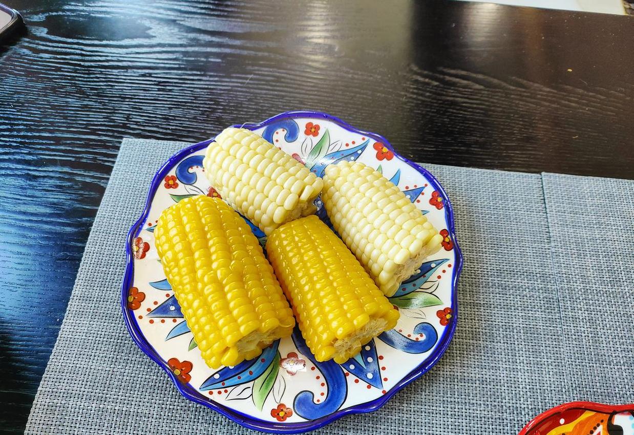 我们经常准备两种颜色的玉米,白色的是水果玉米,黄色的是内蒙古糯玉米。