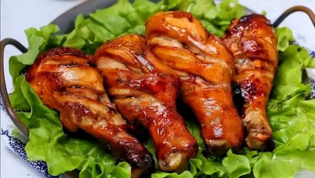 裹酱提香:把炸好的鸡腿放入煮好的酱汁中,翻滚均匀,稍微加热使酱汁更好地渗透进鸡腿,即可起锅装盘。