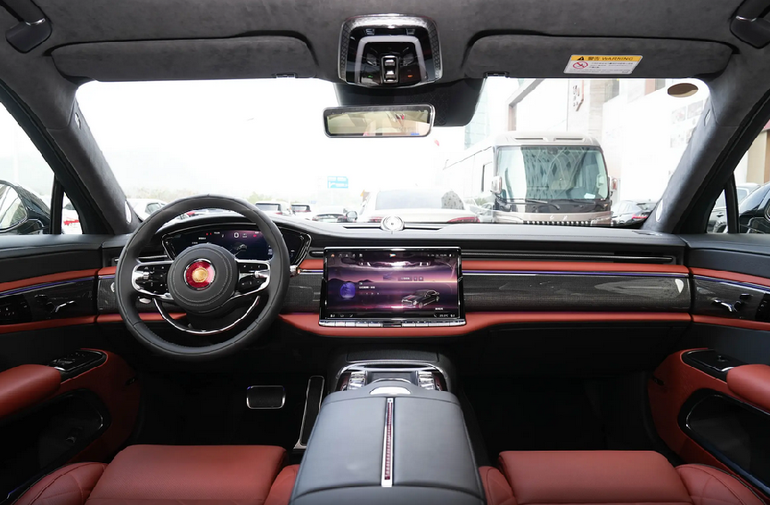 坐进红旗国雅车内,宽敞空间搭配精致内饰,每处细节都显露出一种尊贵的气质,恰似踏入了一座专为旅途而生的豪华移动城堡。整个内饰空间大量运用了双色拼接和镀铬装饰工艺,将复古风格与现代时尚交织在一起,营造出一种豪华氛围。首先映入眼帘的是那双色方向盘,其设计独具匠心,复古镀铬半圆环的加入不仅为方向盘增添了一份独特的造型美感,更为驾驶者带来了别具一格的操作体验。当需要鸣笛时,轻轻按下这个镀铬半圆环,一种与传统鸣笛方式截然不同的触感与声音反馈,让人感觉眼前一亮,