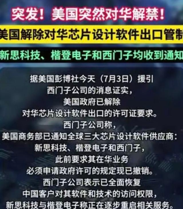 2025年7月3日,一则消息在我国各大媒体平台上登上热搜,词条为“美国放开对华为芯片的限制”。