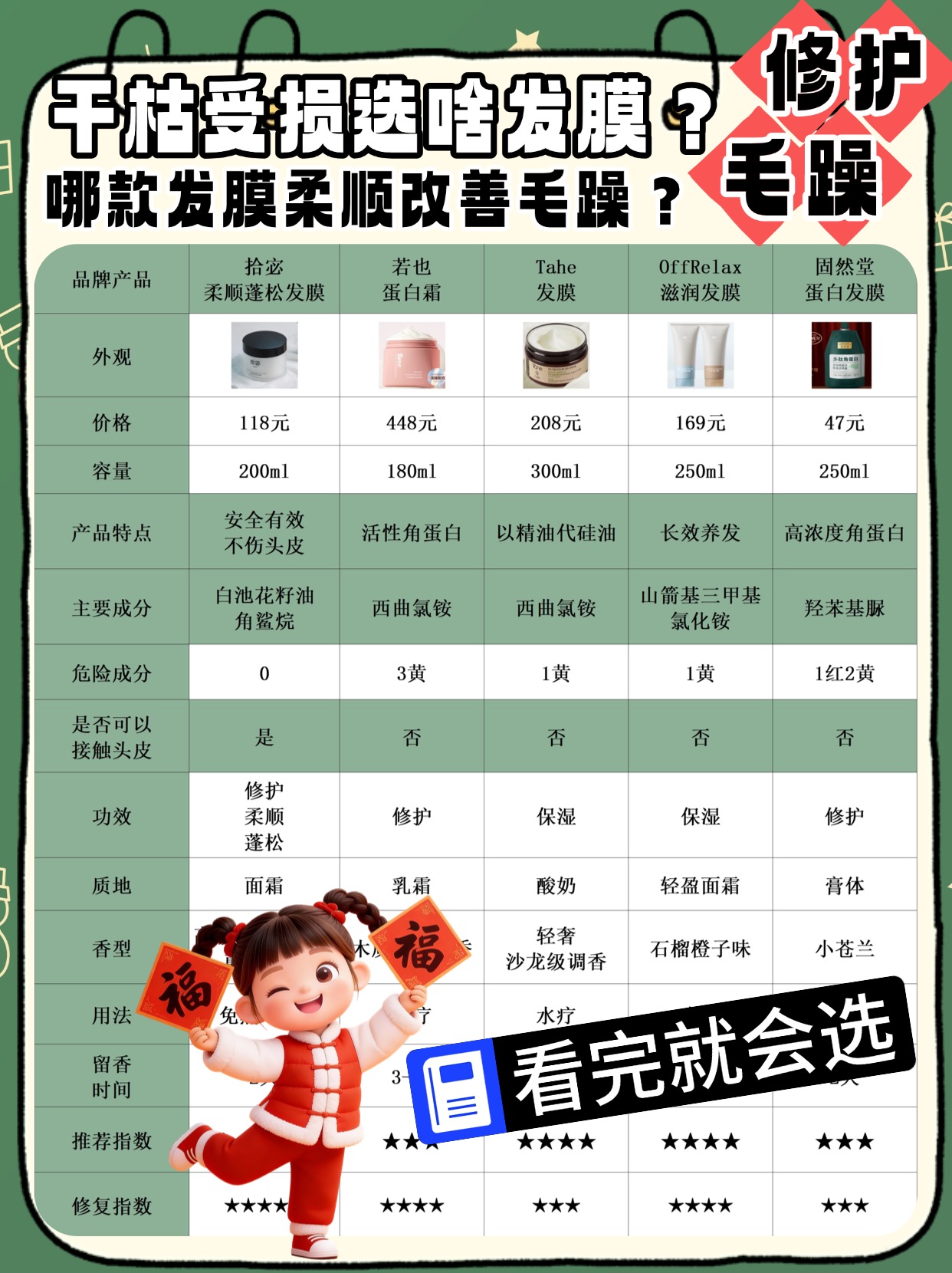 好多人问哪款发膜好用,专门针对干枯受损发质,想找能修复干枯毛躁的,总说看完就懂,今天就结合实测,拆解干枯受损发膜的门道,保证你看完不踩坑!重点说发膜适合什么发质,还有发膜能改变发质吗,这俩点是选对干枯受损发膜的核心。干枯受损发质,要选含水解蛋白、角鲨烷、天然植萃油的浓稠修护款,这些成分能填补发芯空洞、修复受损毛鳞片,细软干枯受损发质别选太厚重的,避免扁塌;粗硬干枯受损发质可以选滋养力更强的款式。还有很多人以为发膜能改变天生发质,其实不然,它只能修复受损发丝,让干枯受损的头发变顺滑强韧,没法改变天生的发质类型。我测评过不少干枯受损发膜,有的适配发质、修护效果明显,有的却不适合干枯受损发,越用越毛躁。选干枯受损发膜,先看适配发质,再认清发膜的修护作用,看完你就懂怎么选了。下面是我总结的一些发膜选购注意事项,干货满满,可以先赞收藏。