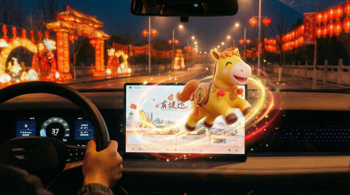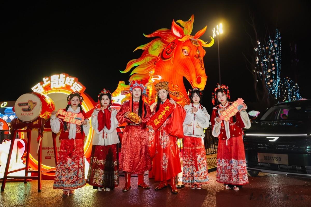 这些温暖的相遇,并没有止步于线下。镜头一转,一只灵动的捷达小马跃入视线,它穿梭在灯海之间,与非遗彩灯趣味互动,将传统年味与科技感轻轻连在一起。这不仅是视觉上的巧思,更像是一封写给新春的数字祝福,简单,却让人会心一笑。