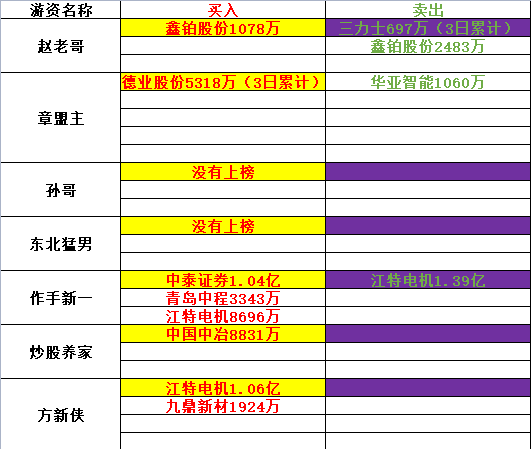知名游资动向
