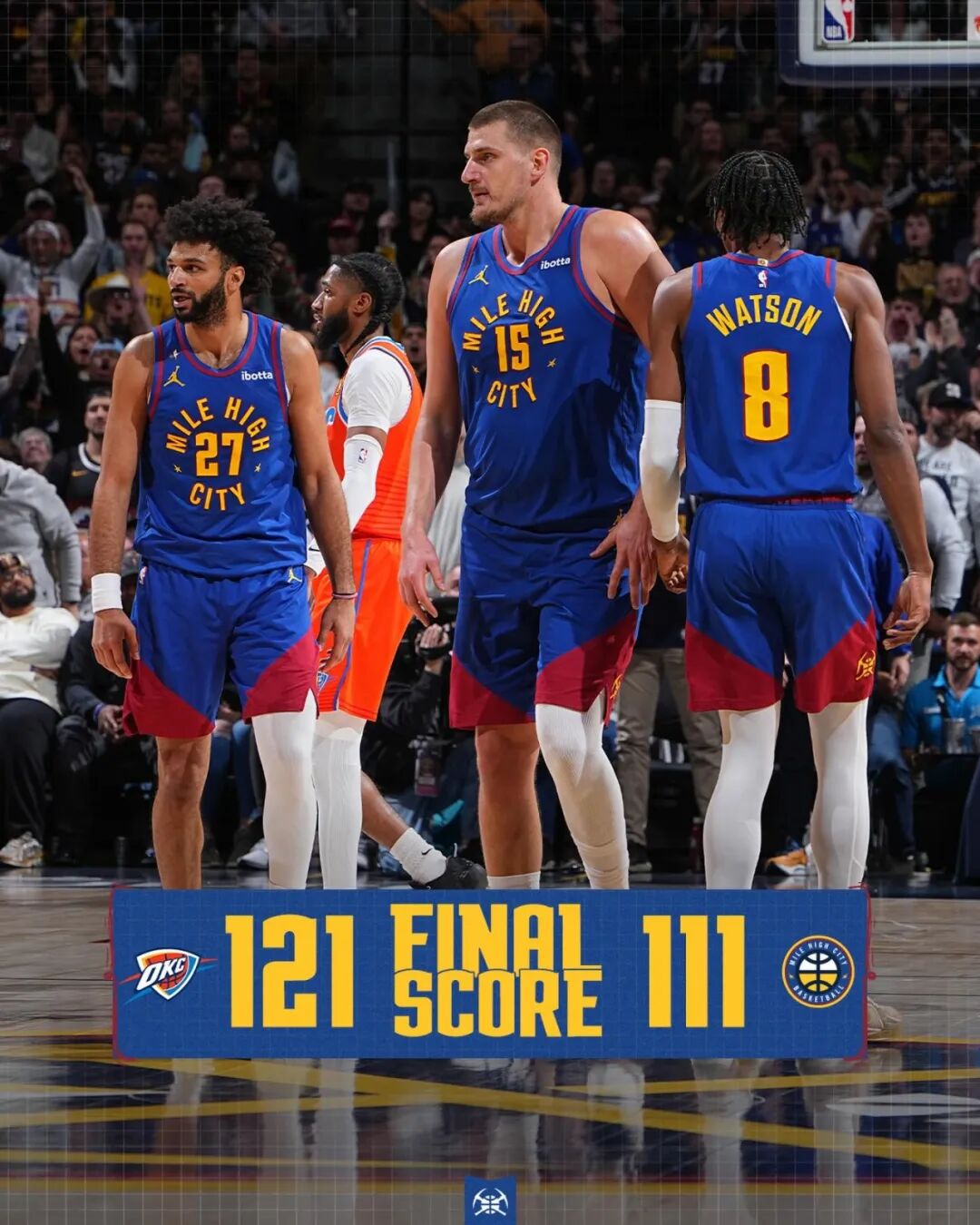 常规赛,掘金主场111-121不敌雷霆。