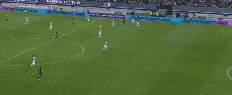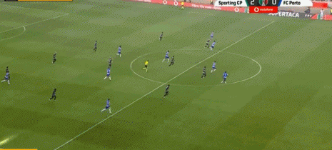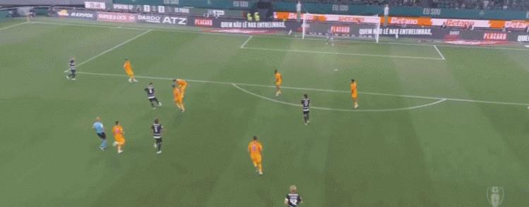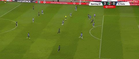 葡萄牙体育中场争夺二点球能力并不强,这就需要突前的球员尽量拿住脚下球来引领同辈跟进,约克雷斯的背身和制空能力是值得信赖的。葡萄牙体育不是一支频繁使用高压和就地反抢打法的球队,约克雷斯的跑动能力主要体现在控球阶段——不断地试图绕开越位陷阱,反复地拉边接应、冲击。