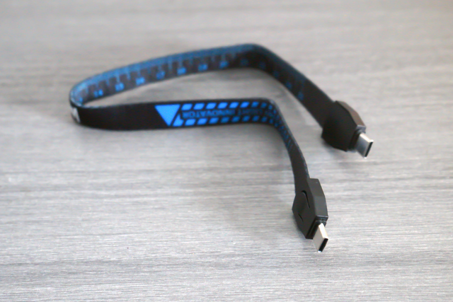 此外,赠送的多功能挂绳也很值得一说。首先,它可以当做一个挂绳,连接便携灯用于户外携带收纳悬挂;其次,它还可以拆分出一个双C口的充电线,用于配合充电收纳仓为便携灯充电;最后,挂绳上还做了刻度设计,可以作为一个卷尺来进行测量工作。