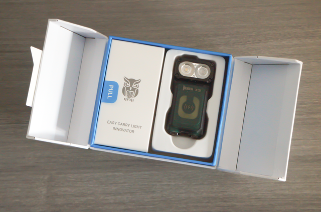 打开包装,我们可以看到配件。因为我入手的是套装版,所以不仅有务本X3便携灯,还有与之配套的充电收纳仓和多功能挂绳。如果是标准版,则是产品+座充的规格配置。