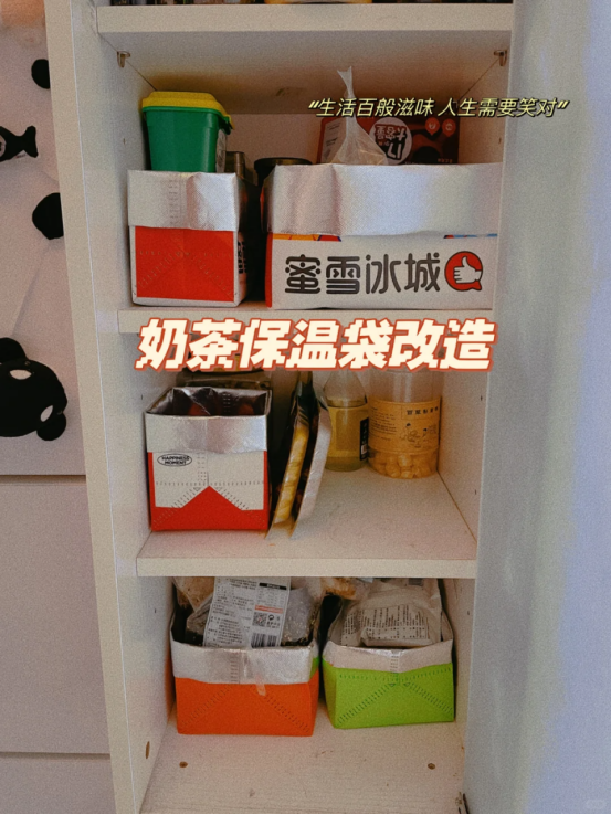 奶茶外卖袋子,既防水又保温,所以千万别急着扔,不如花1分钟动手改造一下,立马变身成实用又省钱的收纳盒。