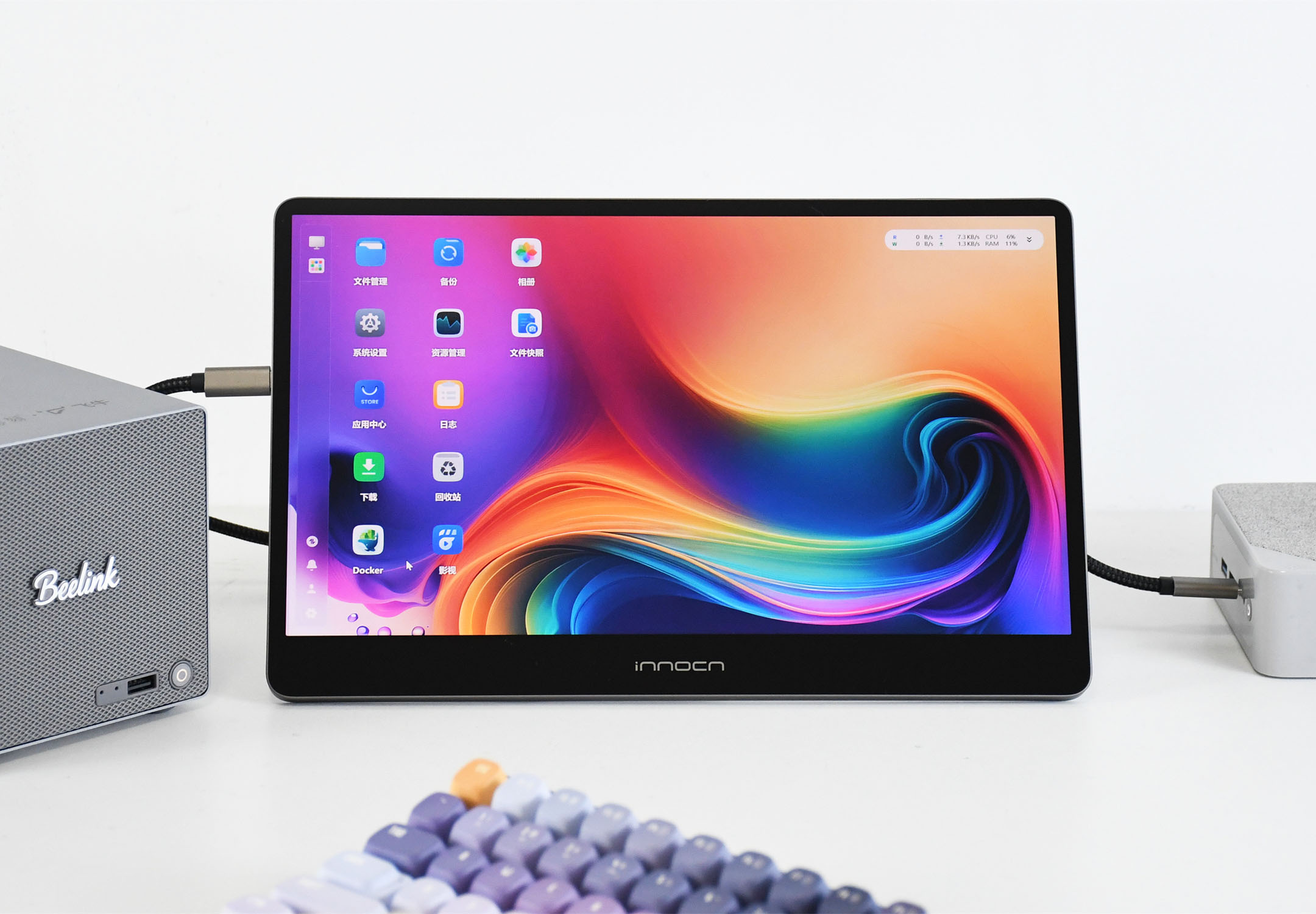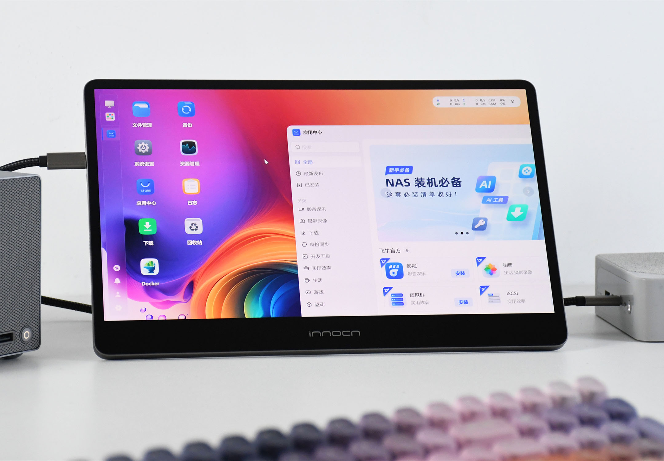 而在使用零刻ME Pro的过程中,我个人最直观的感受就是“省心”。除了安装Windows系统可能需要花点小工夫外,使用飞牛fnOS完全没有什么难度;同时还附送了FN Connect高级版,能提升体验,并且USB-C接口也支持“一线通”,这在初次使用调试时会显得很方便,所以我觉得零刻ME Pro很适合作为“新人”的第一台NAS设备。