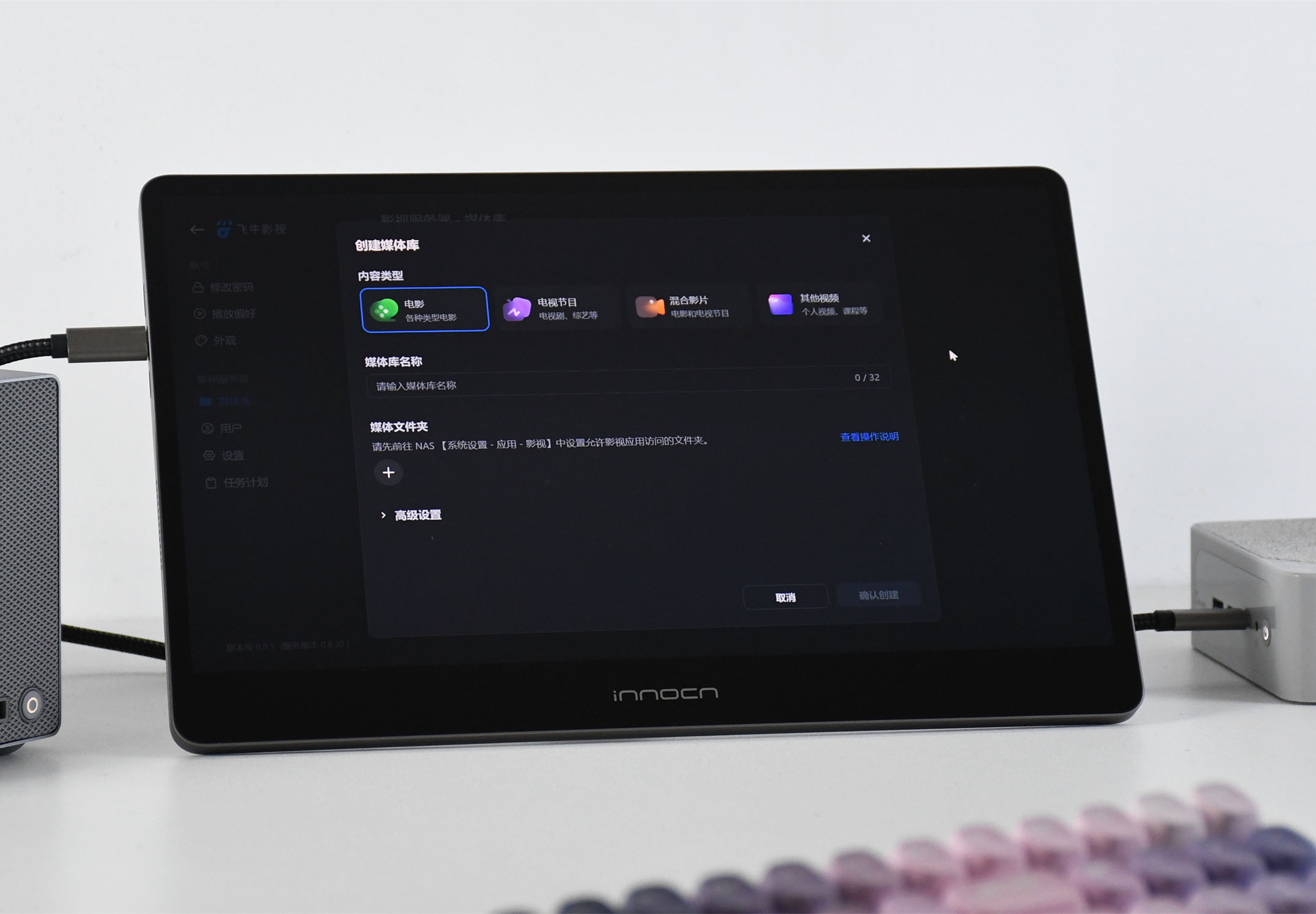 像飞牛官方的这个影视应用,相当于创建一个本地的影片库,通过创建媒体库等设置后,家中的电脑、电视、平板等设备都可以进行影片共享,如果开通了零刻ME Pro的FN Connect高级版,还能以远程方式进行观看。