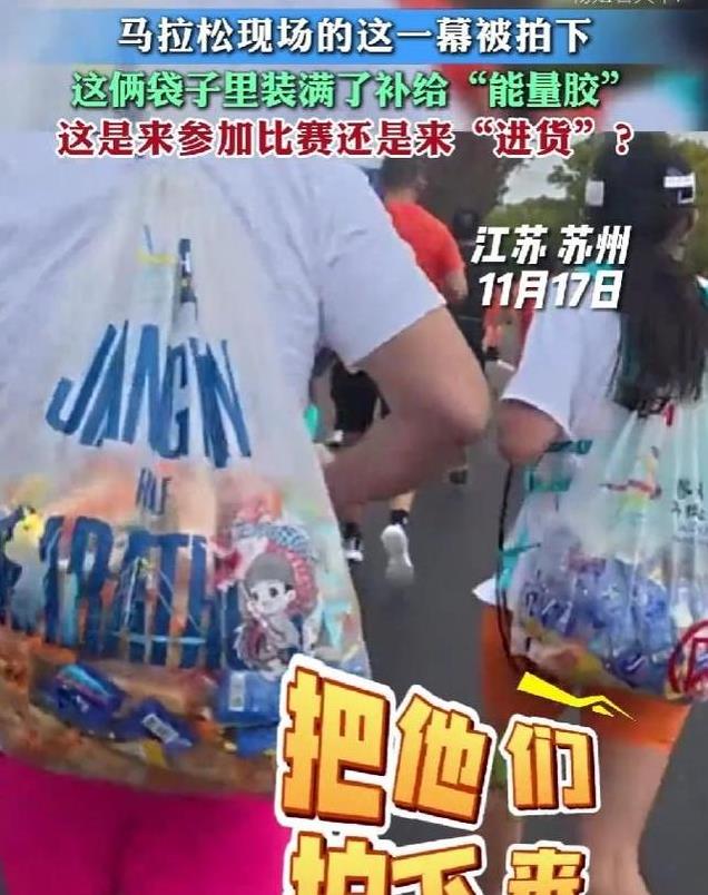 然而这对夫妻用透明塑料袋装满补给品,在赛道上“负重”奔跑的画面,迅速从现场传播至社交媒体。