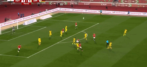 上半场结束前,埃及队再遭打击,特雷泽盖突入禁区倒地,被主裁判认定假摔并出示黄牌。