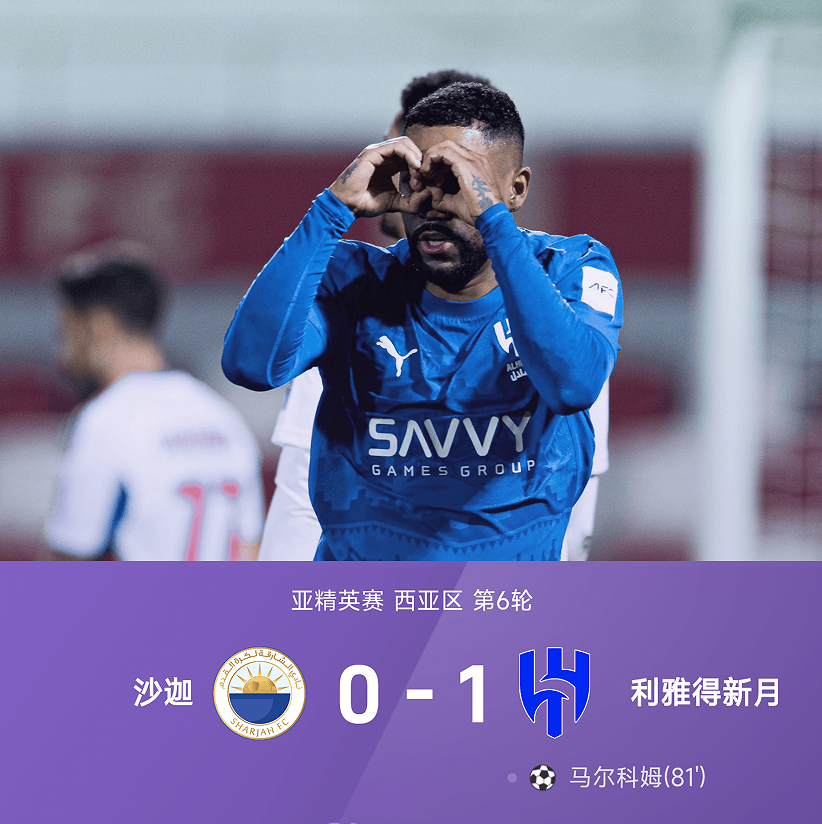 亚精英赛战报:马尔科姆一锤定音,利雅得新月1-0沙迦
