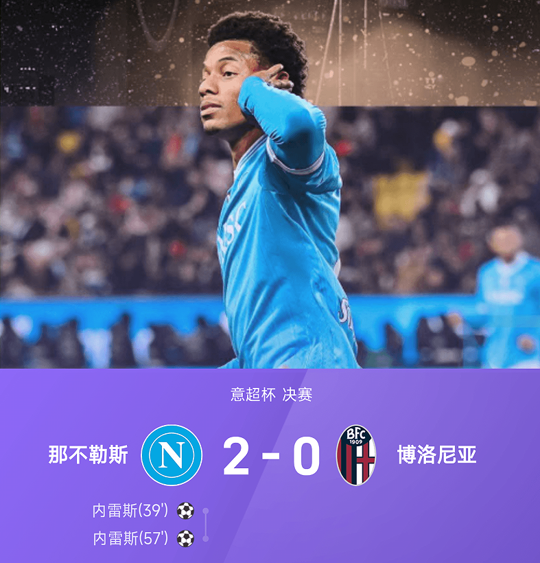 意超杯决赛战报:内雷斯双响,那不勒斯2-0博洛尼亚夺冠