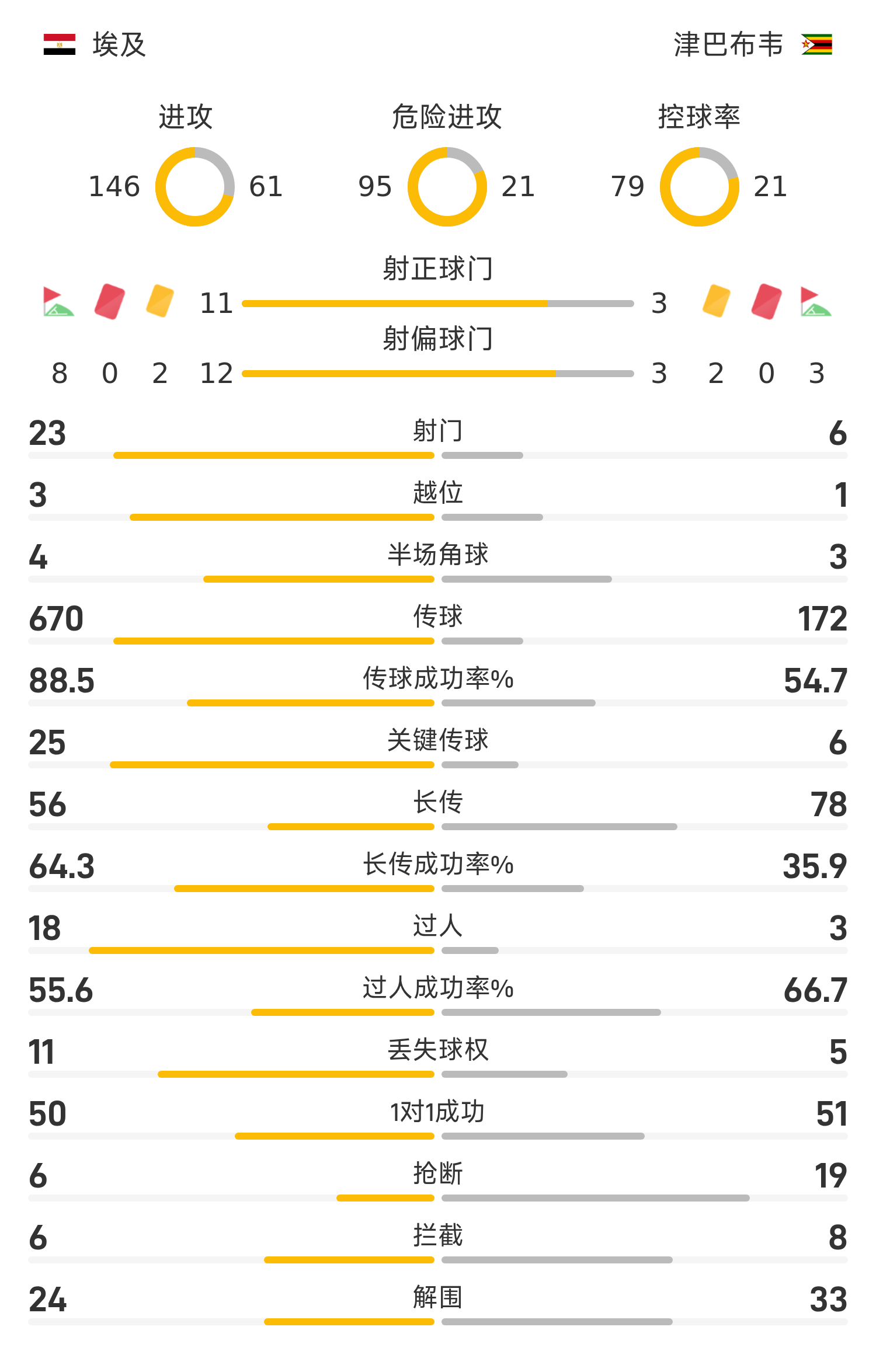 扳平后,埃及队攻势更盛,齐佐等替补球员也获得多次头球机会,但都与进球失之交臂。