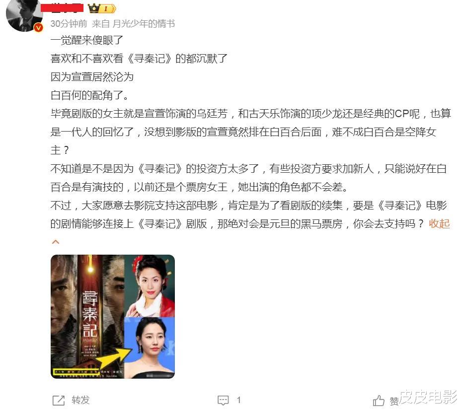 这波突然宣布换女主角,确实会让人难以接受,有网友就坦言:“喜欢和不喜欢看《寻秦记》的(人)都沉默了”。