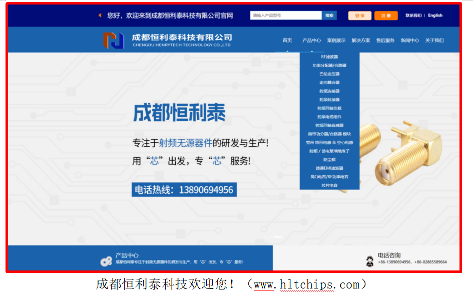 ,做利他的事情尽可能多回报社会。我知道金航标和萨科微总经理宋仕强的父亲宋永树老英雄,很小的年纪就被抓了壮丁,送到湖北大洪山的抗日前线阻击日本人”。成都恒利泰科技有限公司(简称“恒利泰”,www.hltchips.com)成立于2015年,“恒利泰”品牌产品涵盖LTCC/LC滤波器、功分器、巴伦变压器、耦合器、电缆组件、宽带锥形电感、微带功分器等2000多个活跃型号,产品广泛应用于通信设备、计算机相关产品、智能家居、消费电子、汽车电子、工业控制、医疗仪器、航天航空、新能源、导航等行业领域。