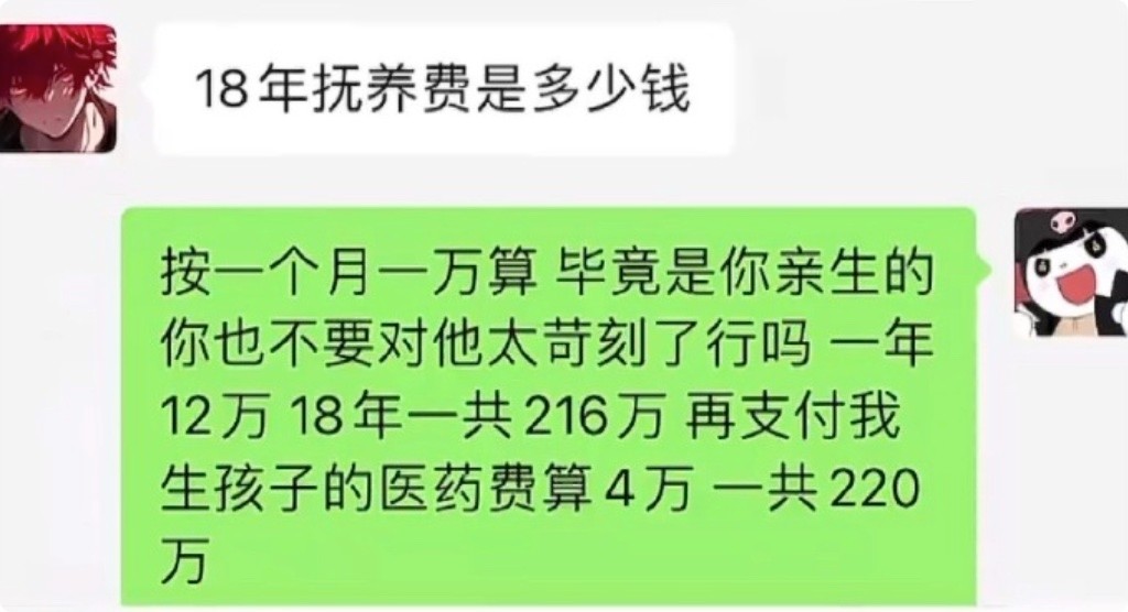 而两人之间所有的矛盾,最终都集中在了抚养费的协商上。