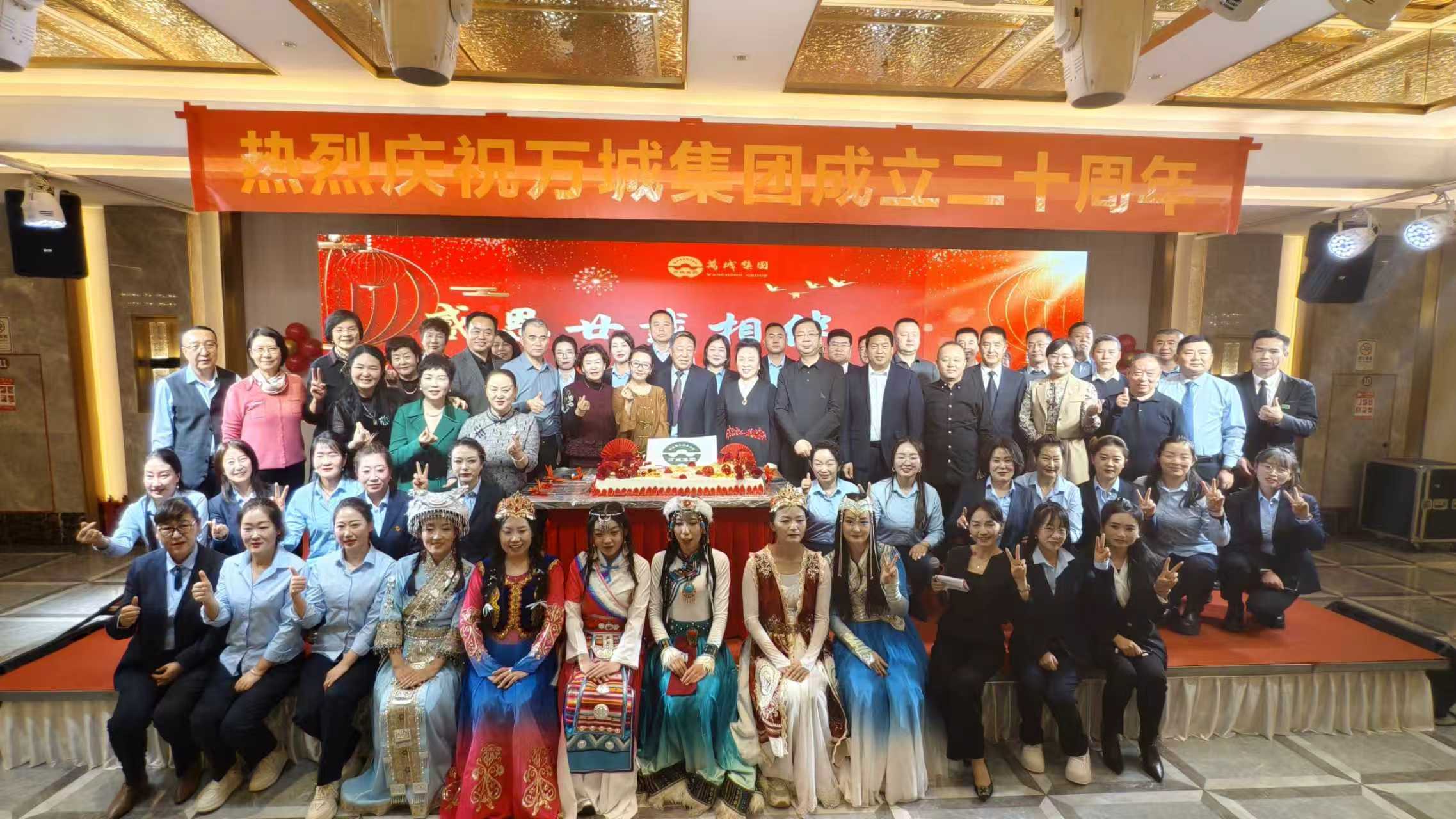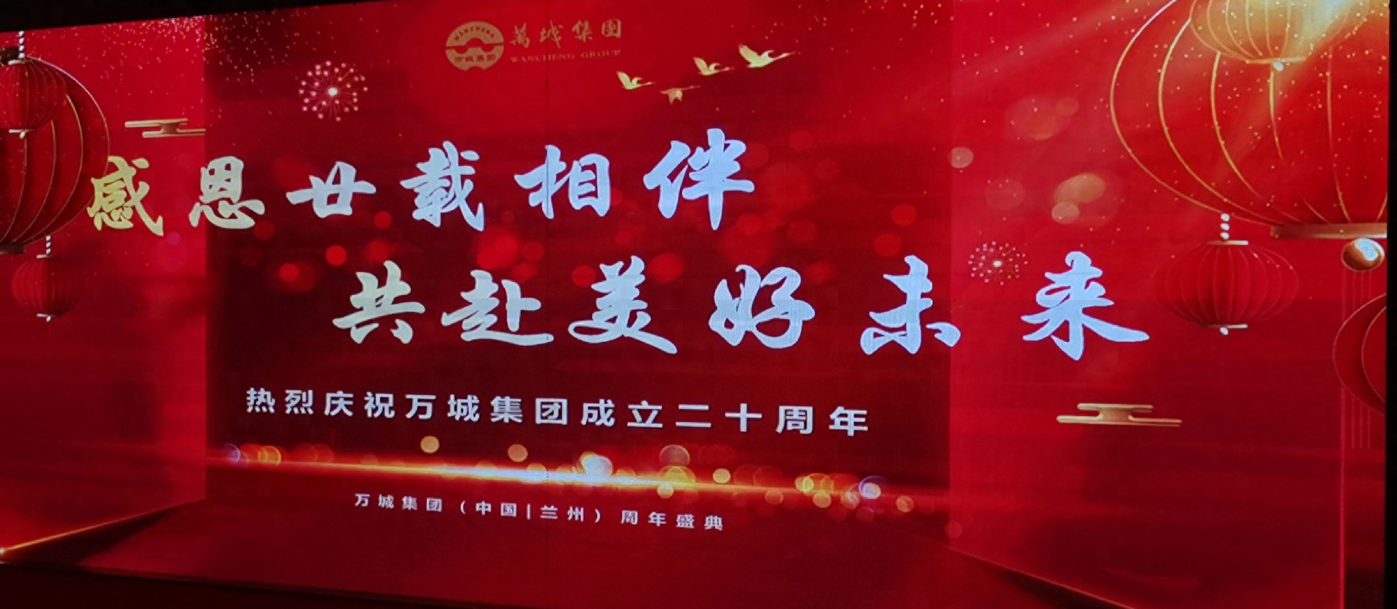 4楼会场主席台背景屏幕上,庆祝万城集团成立20周年10几个大字格外显眼。来宾和万城集团的员工分坐10几张桌旁,喜气洋洋的一起亲热聊天。15时许主持人宣布庆典正式开始,随着开场舞《旗开得胜》上台表演,会场热烈气氛陡然升起。