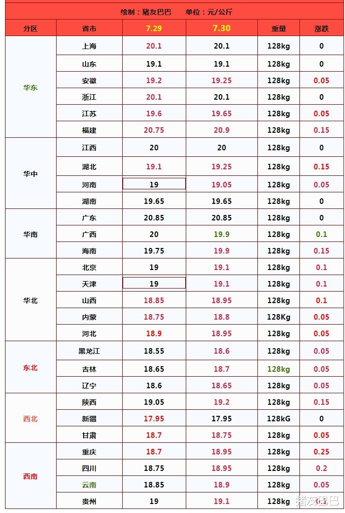 据机构数据分析,受屠企调价收猪,2024年7月30日,外三元生猪报价上涨0.07元,屠企报价涨至19.28元/公斤,后市关注市场购销格局的变化,理性来看,猪价仍将以震荡偏强为主!