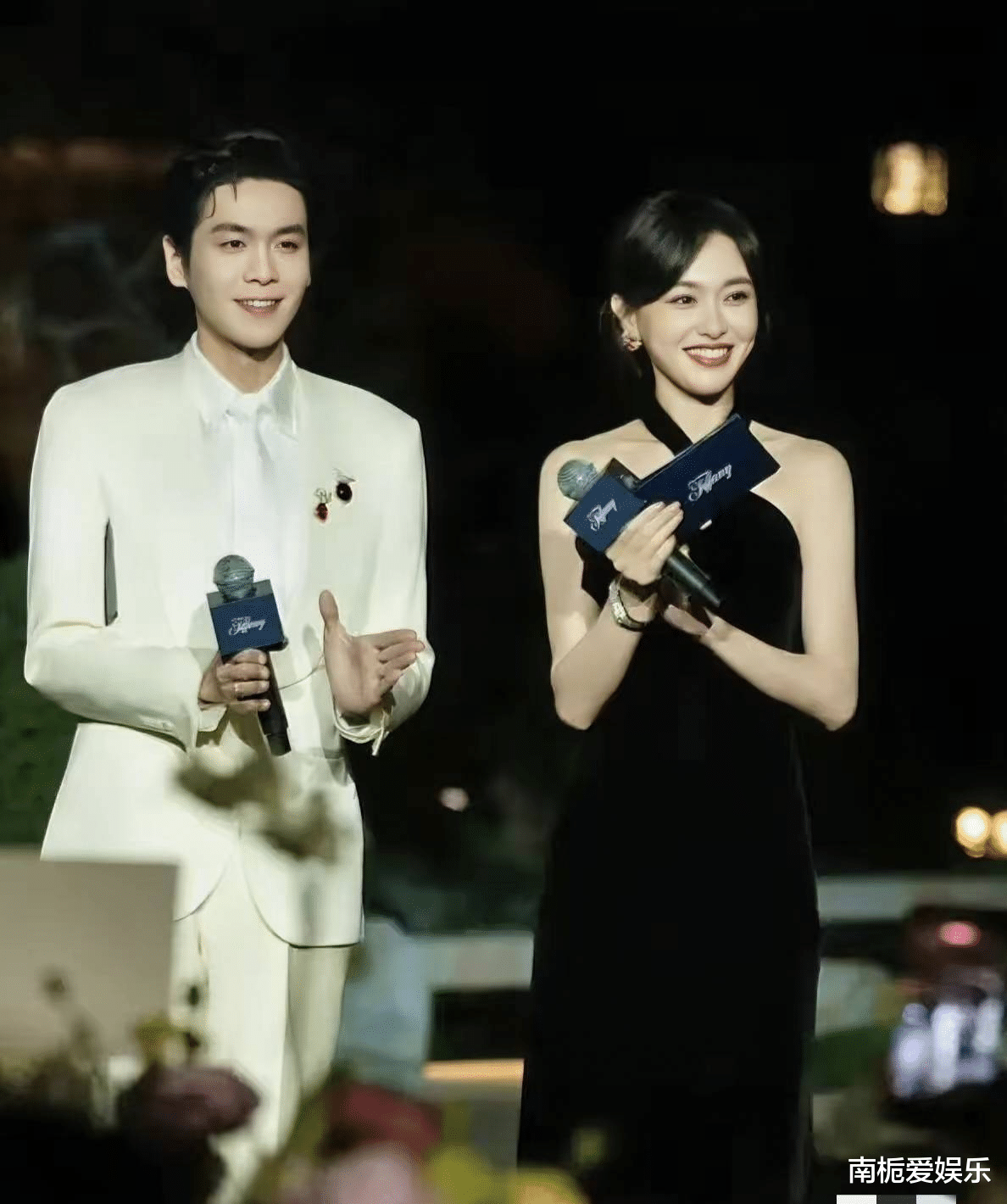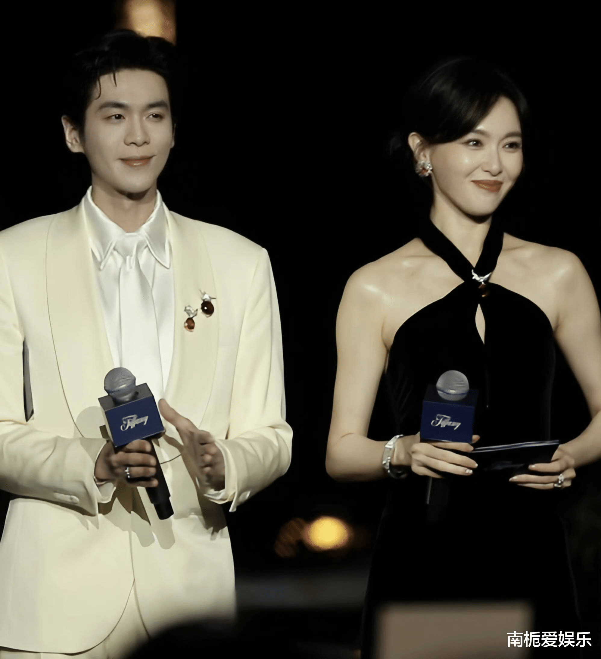 晚宴当晚,唐嫣一袭黑色挂脖丝绒长裙,搭配蒂芙尼高级珠宝,盘发造型尽显温婉大气;张若昀身着白色西装,佩戴“石上鸟”双主石胸针,儒雅贵气如小说中的精英男主。两人一黑一白,并肩而立,视觉冲击力十足,被网友称为“最养眼主持组合”。主持过程中,唐嫣声线温柔清晰,娓娓道来品牌百年匠艺;张若昀沉稳控场,节奏精准,临场反应灵活。从流程串联到嘉宾互动,二人配合天衣无缝,传递话筒、眼神交流等细节自然流畅,完全打破“演员跨界即翻车”的刻板印象。