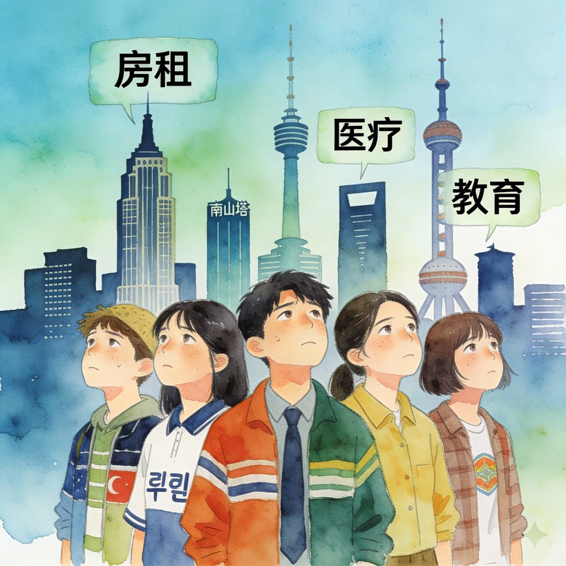 排名在前两位的缘由,不是冒险憧憬异国,而是两个字:成本以及安全感。房租、医疗,、学贷、通胀这些词汇常常出现,就如同背景噪音一般,在他们成年初期一直存在着。
